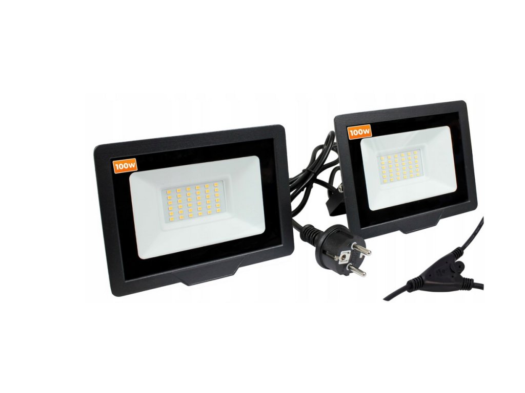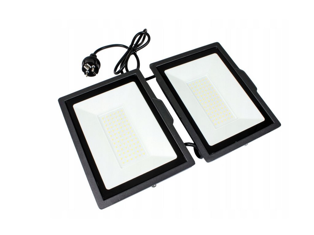 Profesionální halogenový LED reflektor s výkonem 2x100W (200W) se studenou barvou světla 6000K , 1,5m napájecím kabelem a krytím IP65. Ideální volba pro intenzivní osvětlení pracovišť, stavenišť a venkovních prostor.