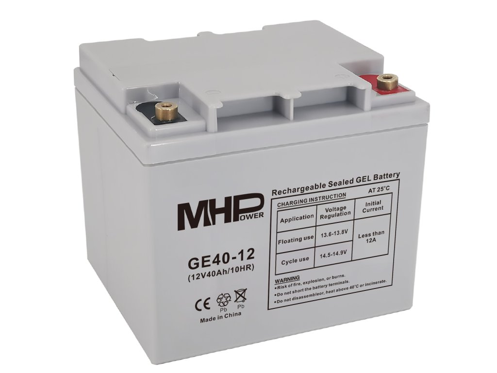 Gelová baterie MHPower GE40-12 obsahuje speciální separátory a silikagel, který imobilizuje elektrolyt uvnitř. Pevný separátor spolehlivě zabrání možným zkratům a osvědčená technologie silikagelu zase zlepší životnost i teplotní stabilitu a toleranci díky větší rychlosti vypouštění. Životnost cyklu hlubokého vybití poté povyskočila až o 50 % ve srovnání s bateriemi z řady MHPower MS. Filtrační zařízení proti výbuchu kyselé mlhy pak poskytuje bezpečnější a ekologičtější chod za každé situace, tudíž nebude docházet k nehodám a ani k žádnému znečištění životního prostředí.