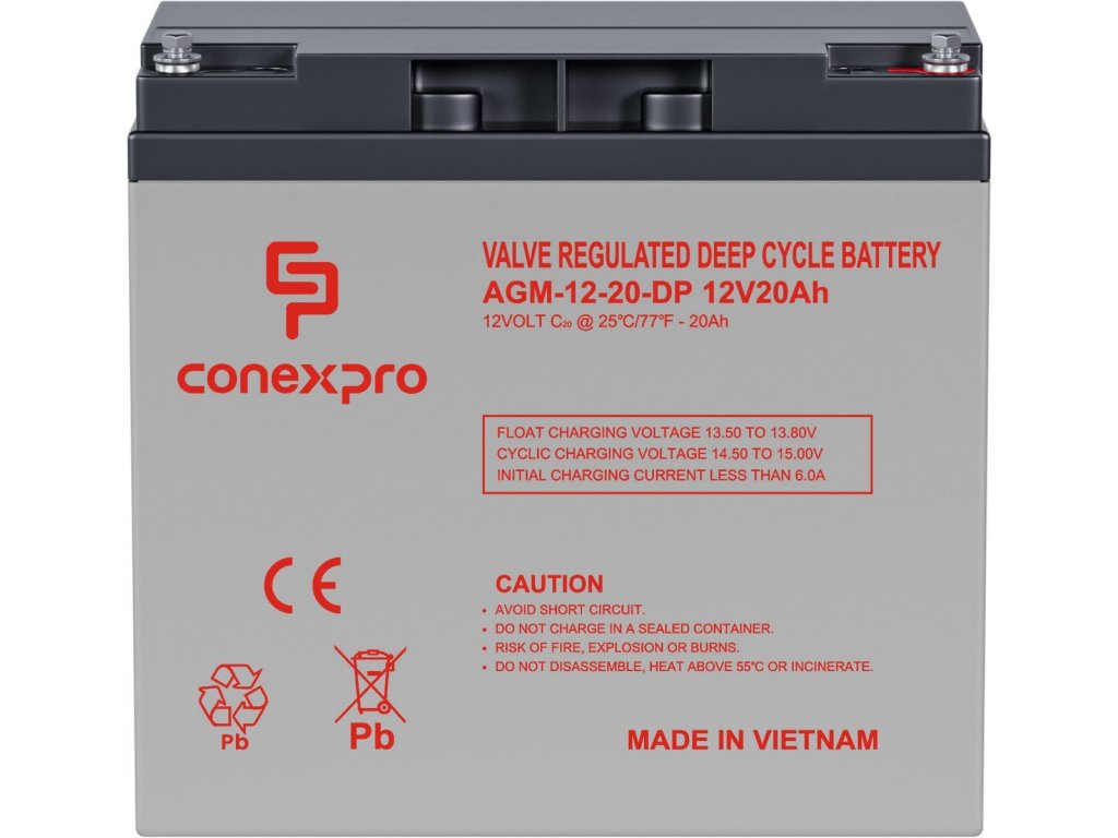 Baterie Conexpro AGM-12-20-DP AGM 12V/20Ah, M5, Deep cycle, živ. 10-12 let