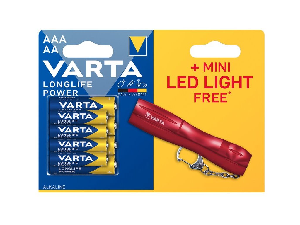 Baterie VARTA Longlife Power LR03/LR06 x4ks + svítilna Mini Led Light