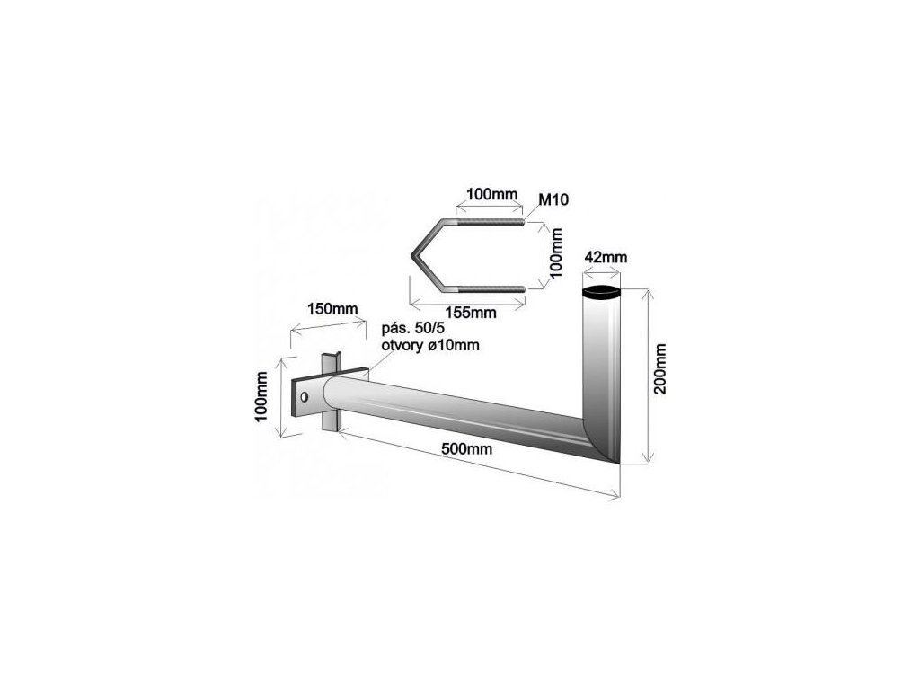 Držák antény na stožár s vinklem, galvanický zinek, délka 50cm