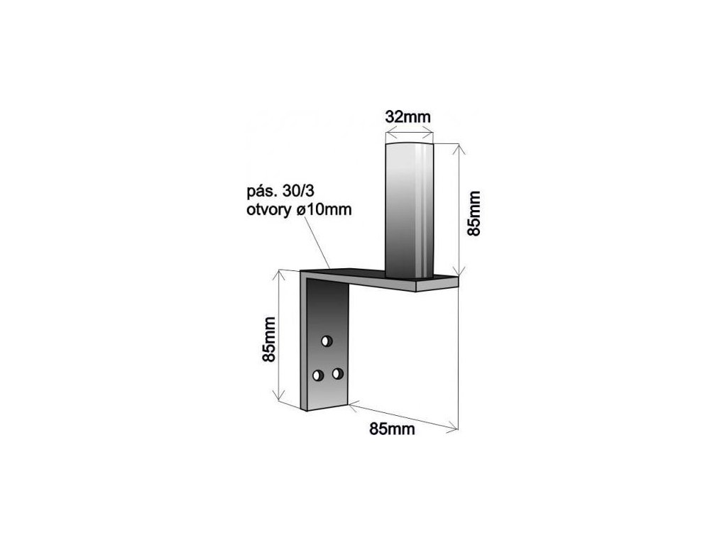Držák antény na zeď mini, galvanický zinek, délka 8,5cm, výška 8,5cm