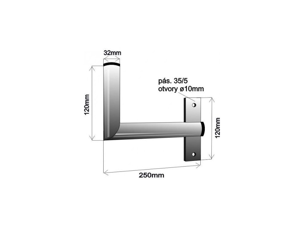 Držák antény na zeď u okna s pásem, pravé uchycení, galvanický zinek, délka 25cm, průměr 3,2cm