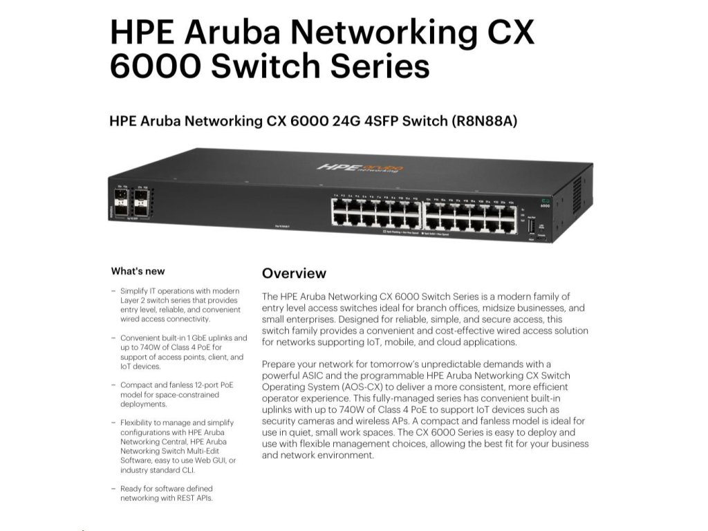 HPE Aruba Networking CX 6000 24G 4SFP Switch R8N88A RENEW