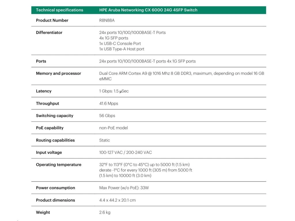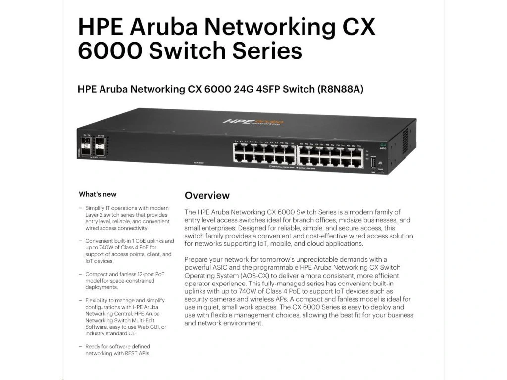 HPE Aruba Networking CX 6000 8p 10M/100M/1G 2p SFP 1G Switch