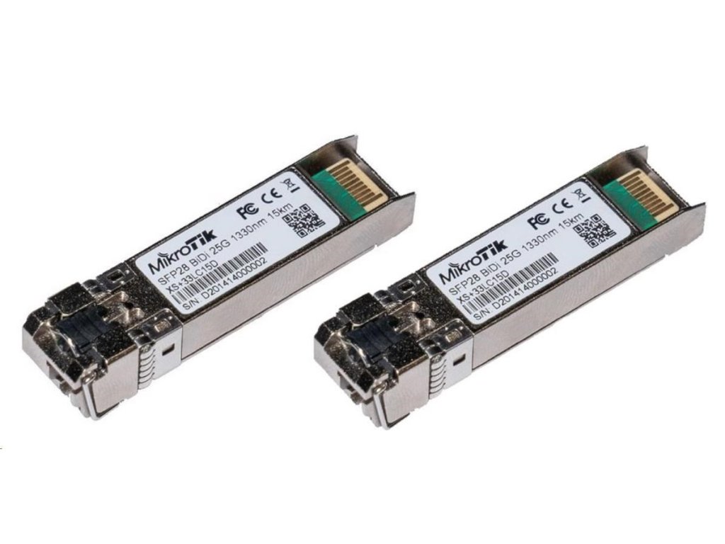 MikroTik SFP28 pár optických modulů XS+2733LC15D, SM, 15km, 1/10/25G, 15km, 1xLC