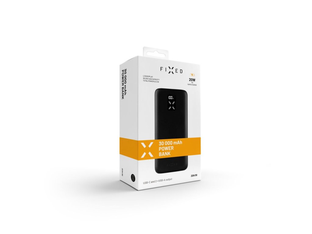 Powerbanka FIXED Zen 30 s LCD displejem a výstupem PD 20W, 30 000 mAh, černá