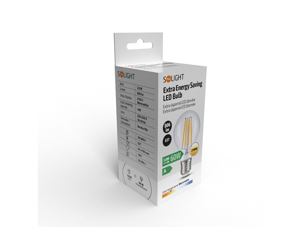 Solight extra úsporná LED žárovka 3,8W, 806lm, 2700K, ekv. 60W