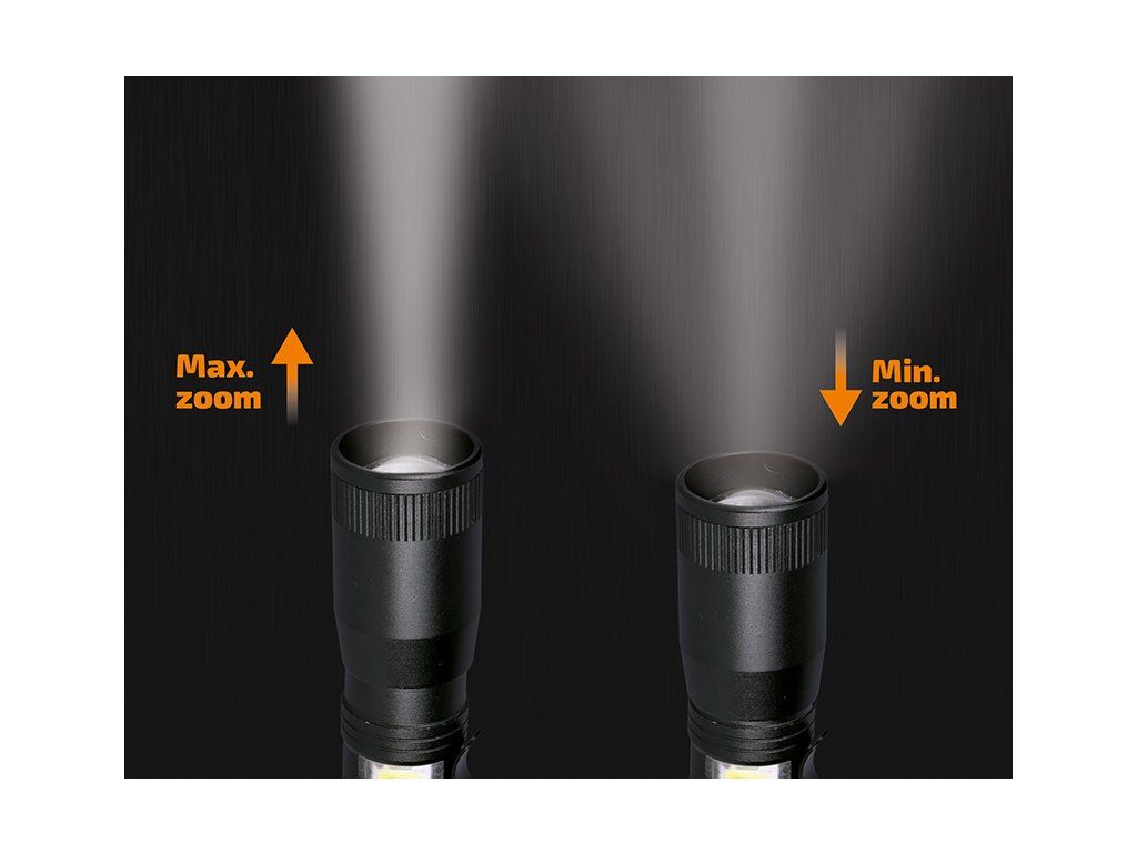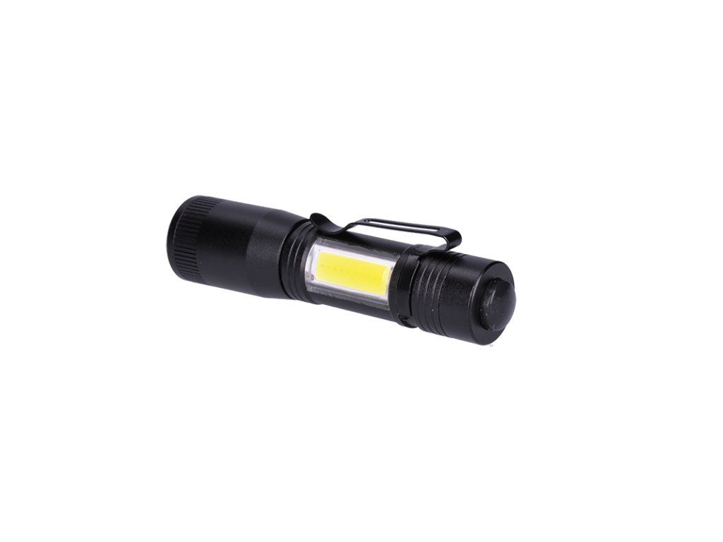 Solight LED kovová svítilna, 150 +60lm, 3W + COB, AA, černá