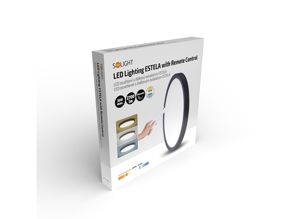Solight LED osvětlení s dálkovým ovladačem Estela Black, 36W, 2700lm, 30cm, změna chromatičnosti, stmívatelné