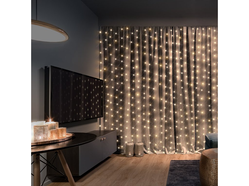 Solight LED vánoční závěs okenní, stříbrný, 300x mini LED, časovač, 8 funkcí, USB