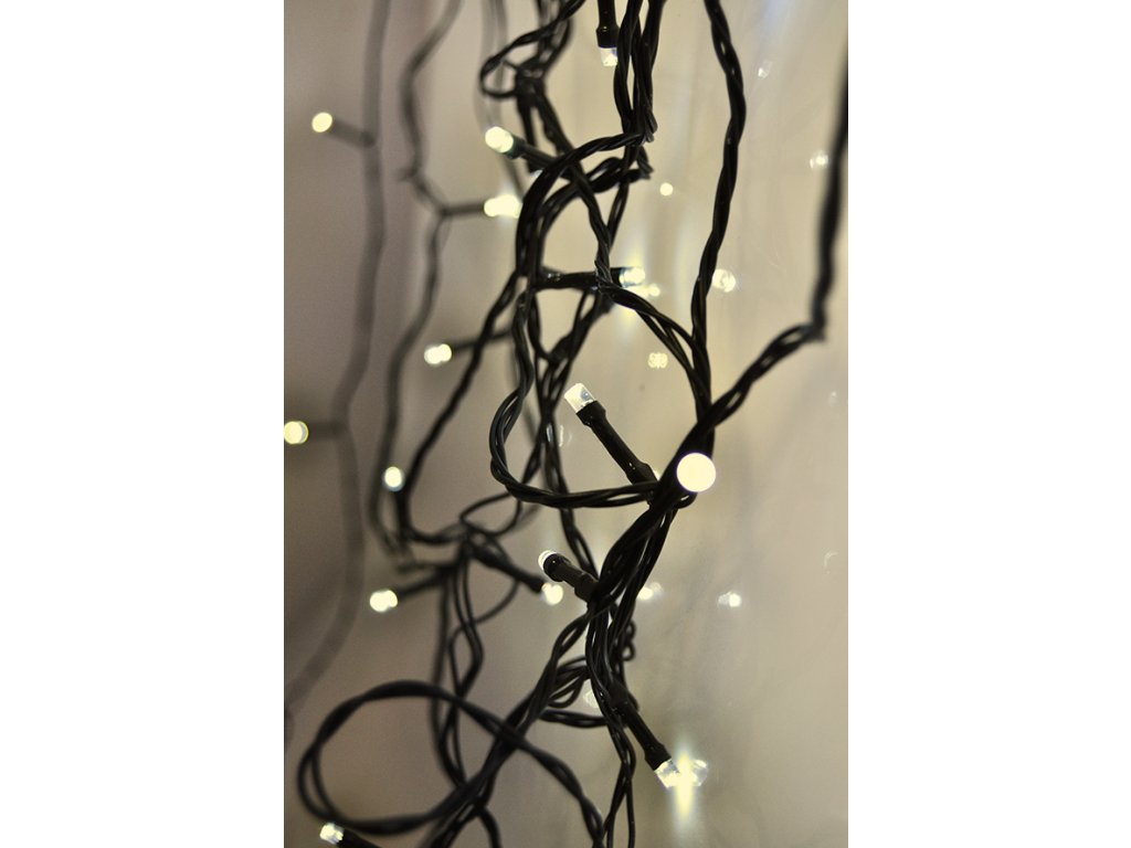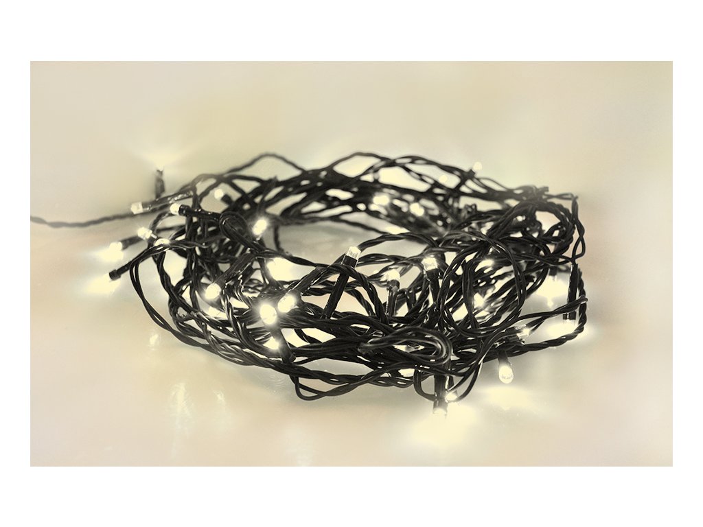 Solight LED venkovní vánoční řetěz, 100LED, 10m, 3m přívod, 8 funkcí, IP44, 3x AA, teplá bílá