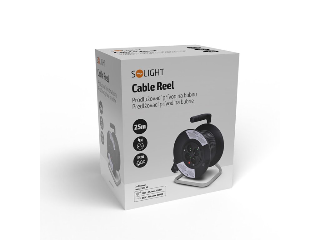 Solight prodlužovací přívod na bubnu, 4 zásuvky, 25m, černý kabel, 3x 1,5mm2
