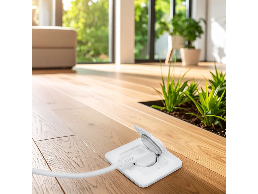 Solight vestavná podlahová zásuvka, IP55, matná bílá, obdélníkové víčko