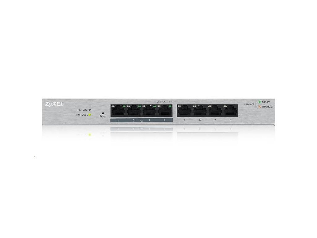 Zyxel GS1200-8HP 8-port Desktop Gigabit Web Smart switch, 4x PoE 802.3at, PoE budget 60W, fanless