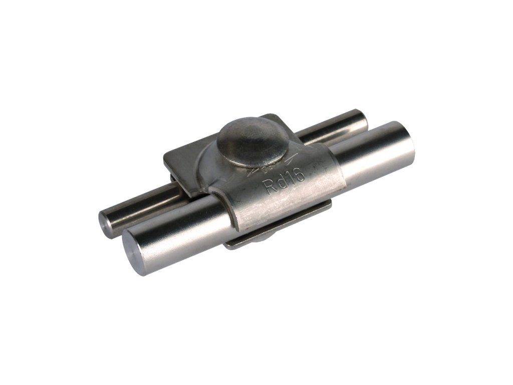 Víceúčelová svorka podle ČSN EN 62561-1, pro univerzální použití jako křížová nebo paralelní svorka pro spojenídrátus jímací tyčí. Dvoudílné provedení se šroubem s vratovou hlavou a ochranou proti protočení.