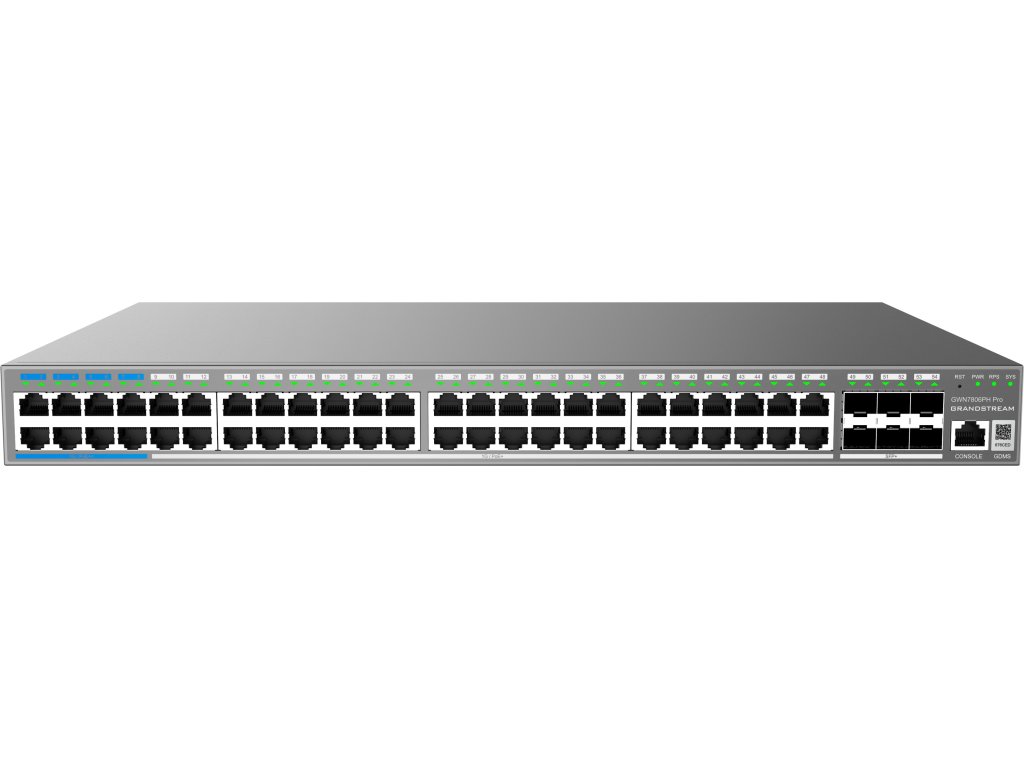 Grandstream GWN7806PH Pro L2++ Managed switch, 48x 1Gb RJ45, PoE++, 6x SFP+, stacking