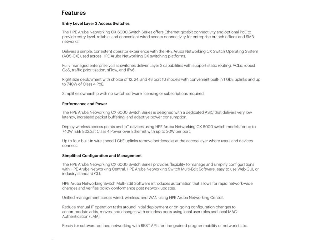 HPE Aruba Networking CX 6000 8p 10M/100M/1G Class4 PoE 2p SFP 1G 67W Switch