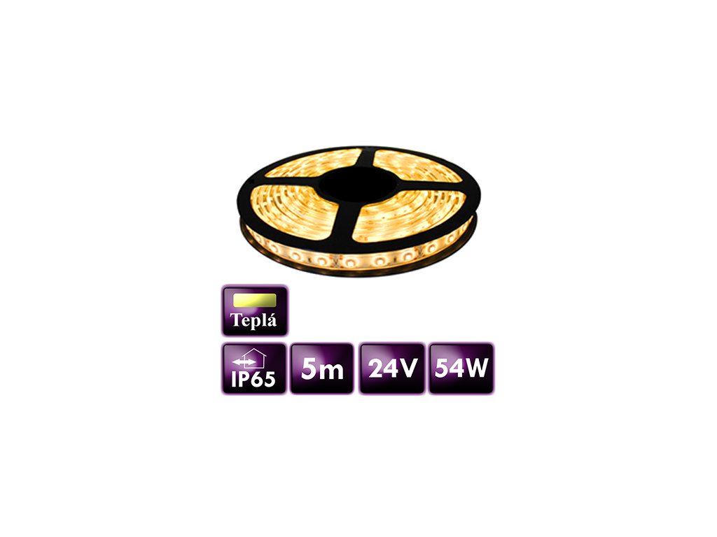 LED pásek - SMD 2835 - 5m - 60LED/m - 10,8W/m - 24V - IP65 - teplá bílá
