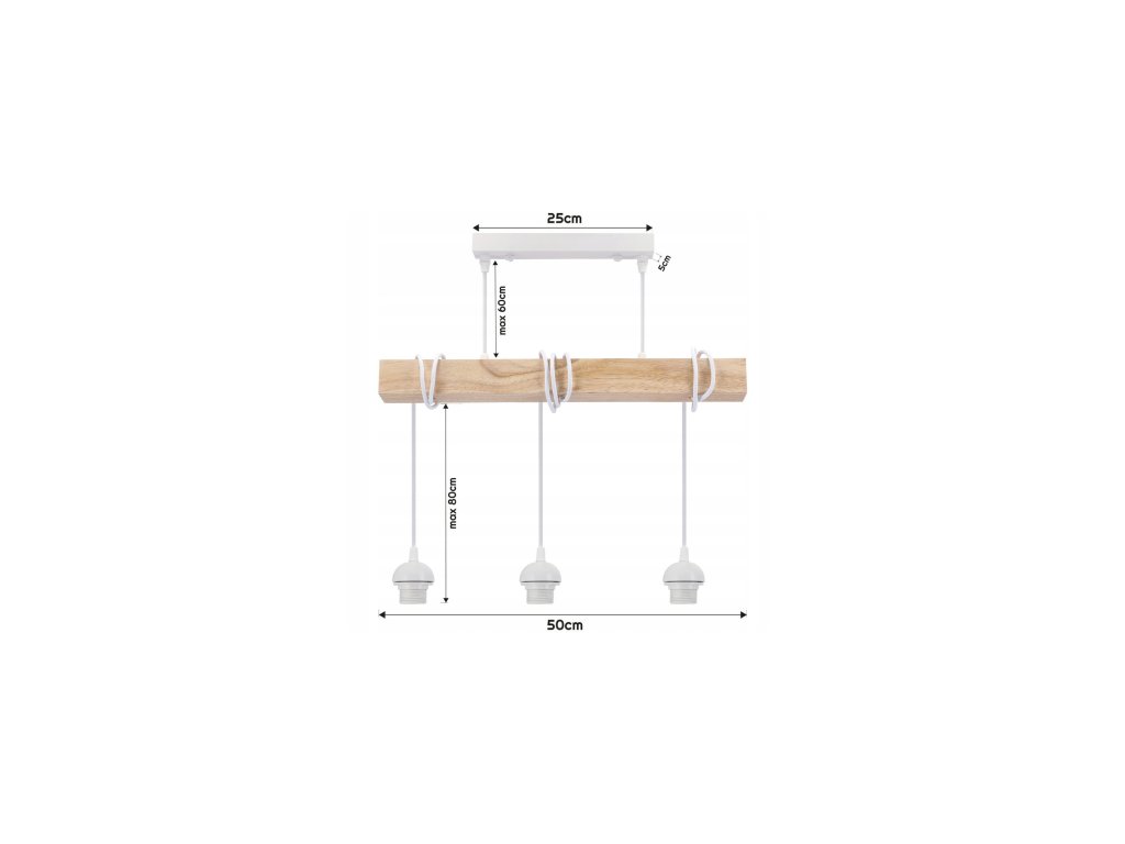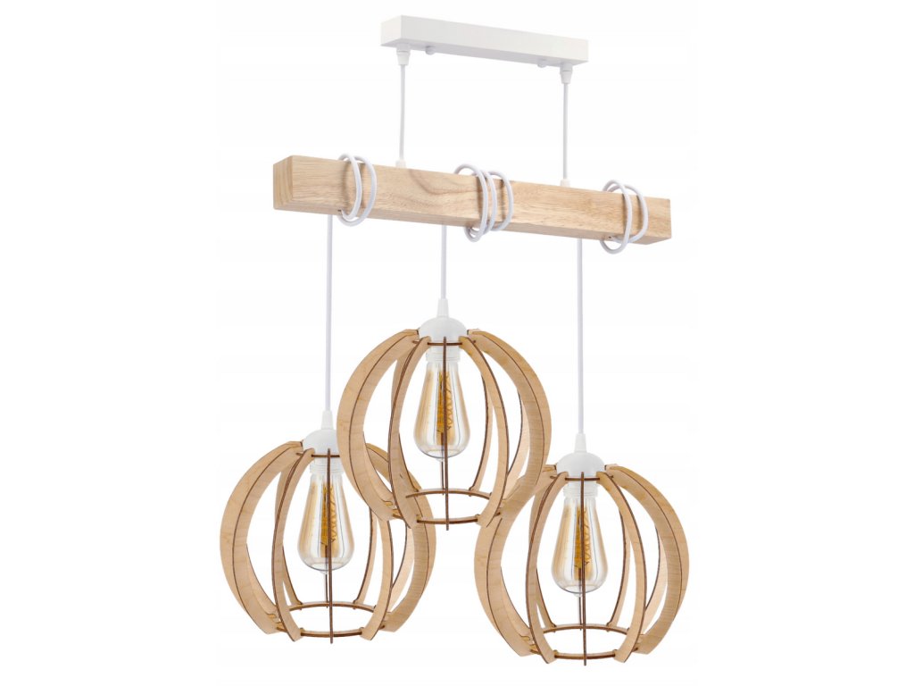 LED závěsné stropní svítidlo, dřevěné, bílé, 3xE27, vzácná koule