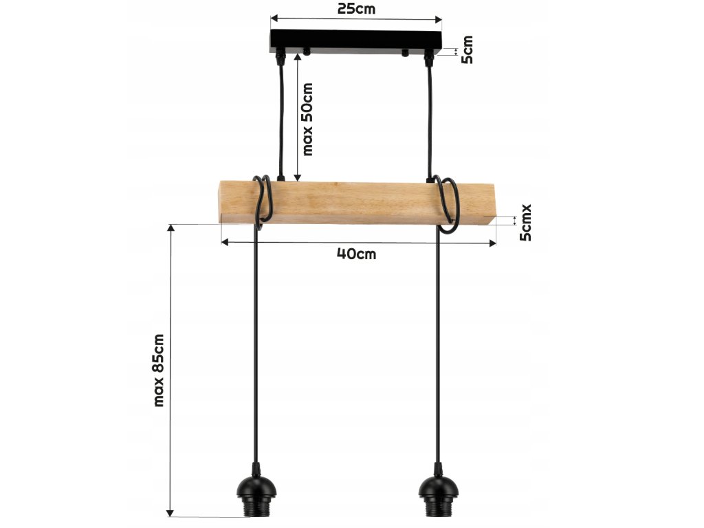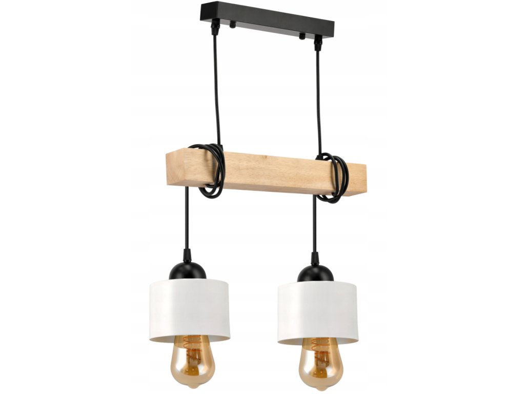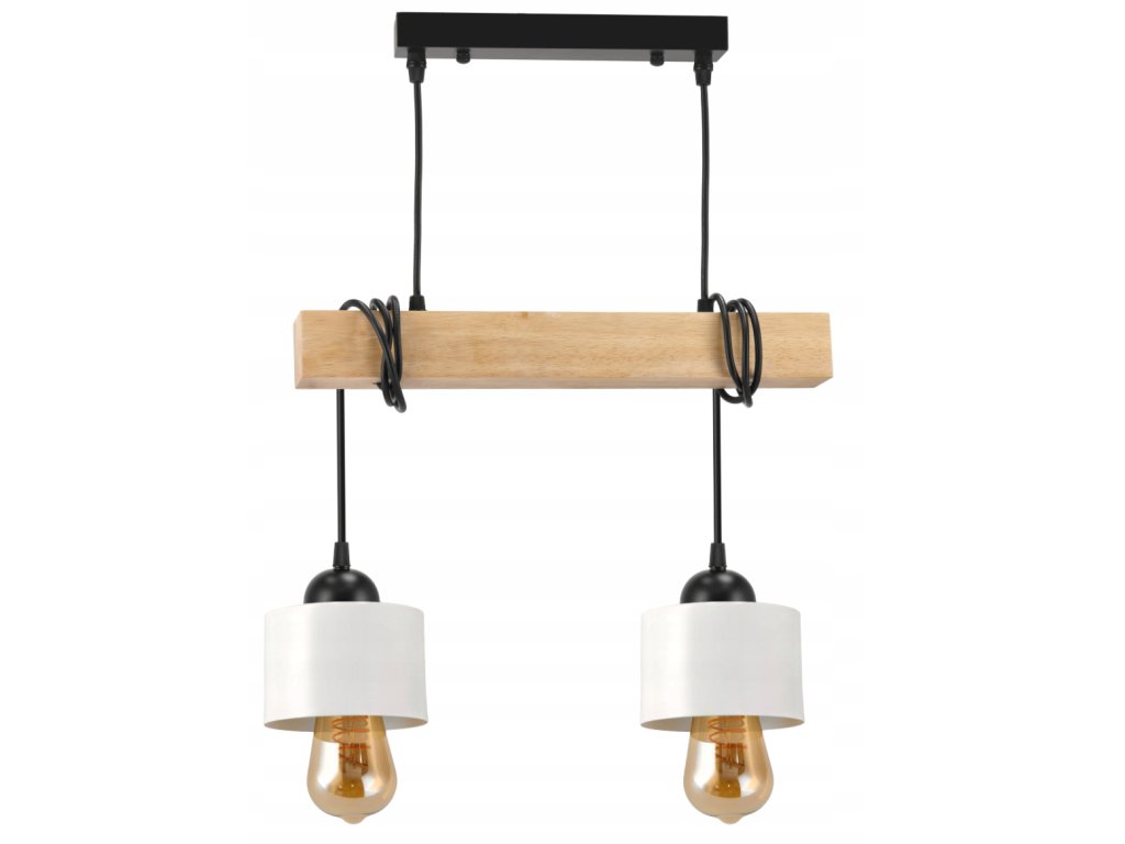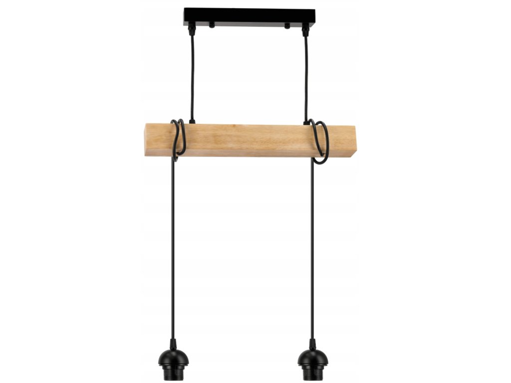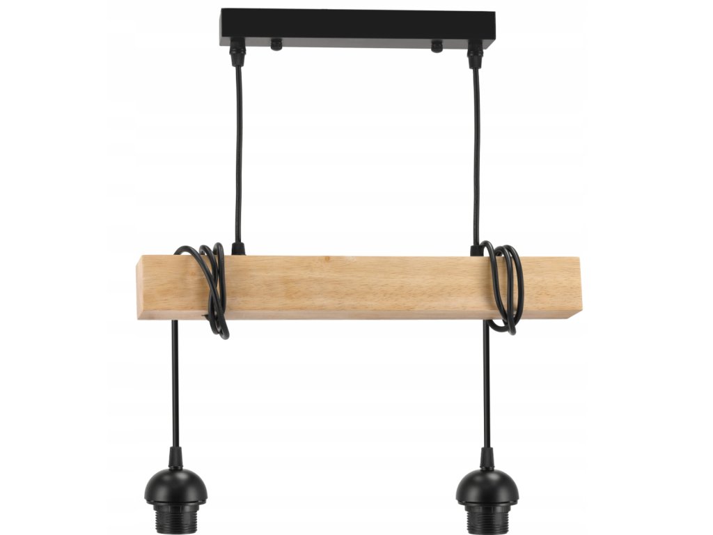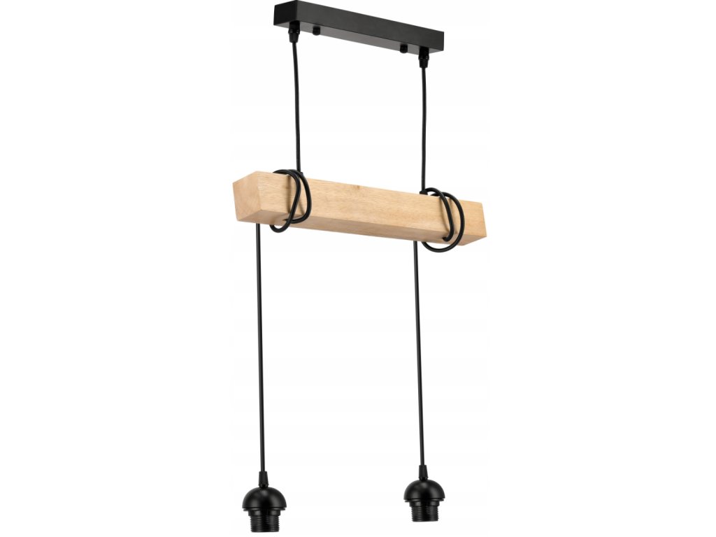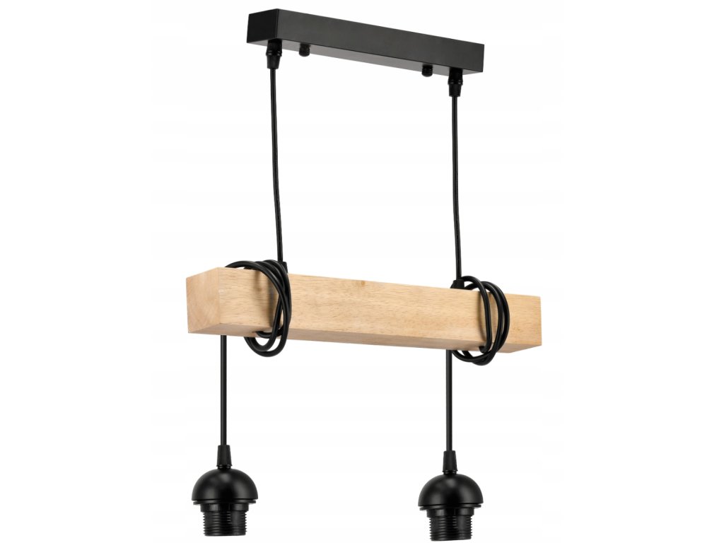 LED závěsné stropní svítidlo, dřevěný trám, 2xE27, kovový pohárový lustr