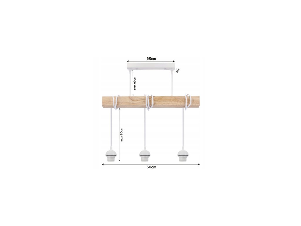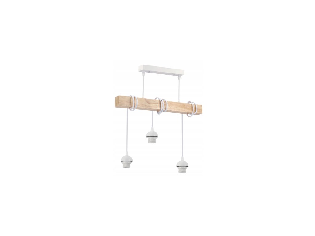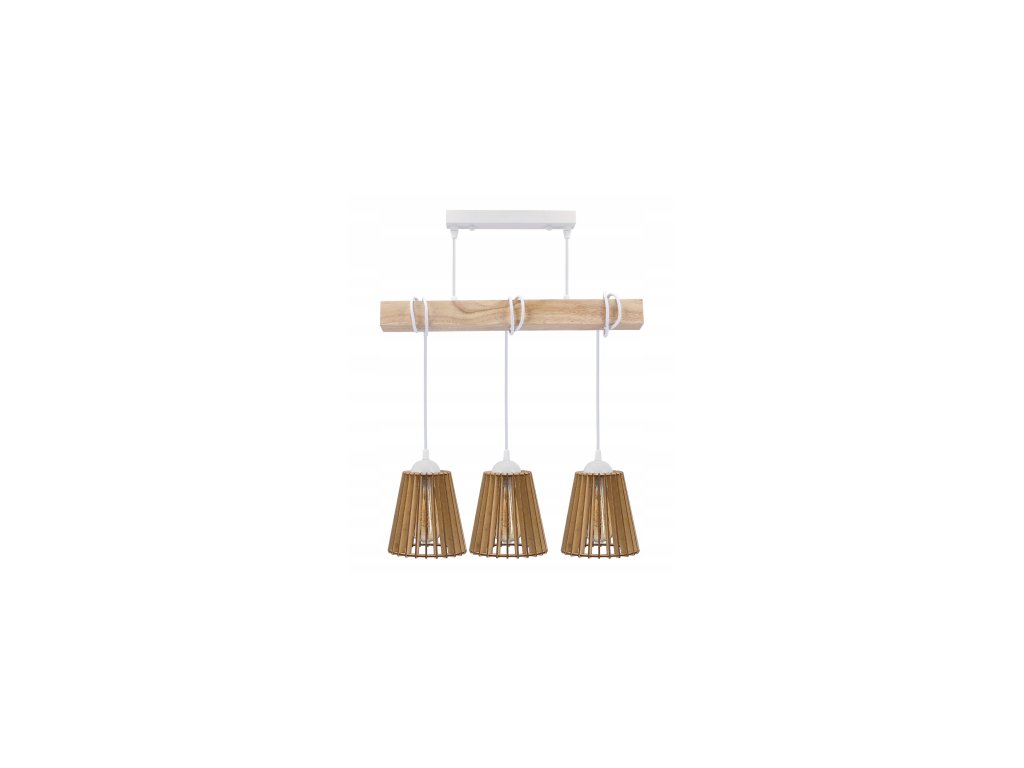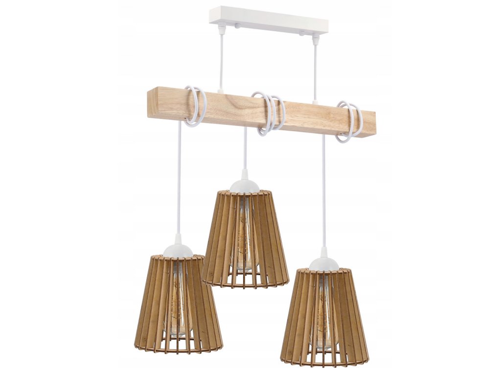 LED závěsné stropní svítidlo bílý dřevěný trám 3xE27 Dřevěný kuželový lustr