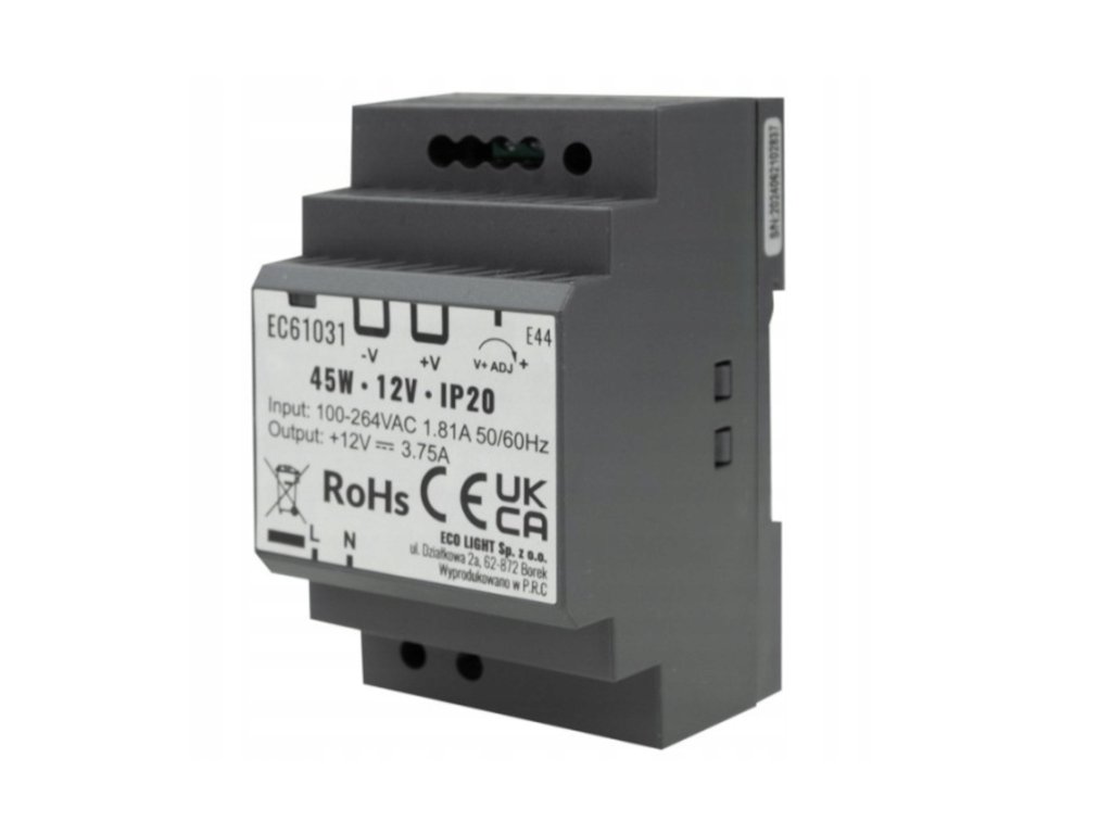 Napájení na DIN lištu - 12V 45W 3,75A pro IP20 PREMIUM LED pásek
