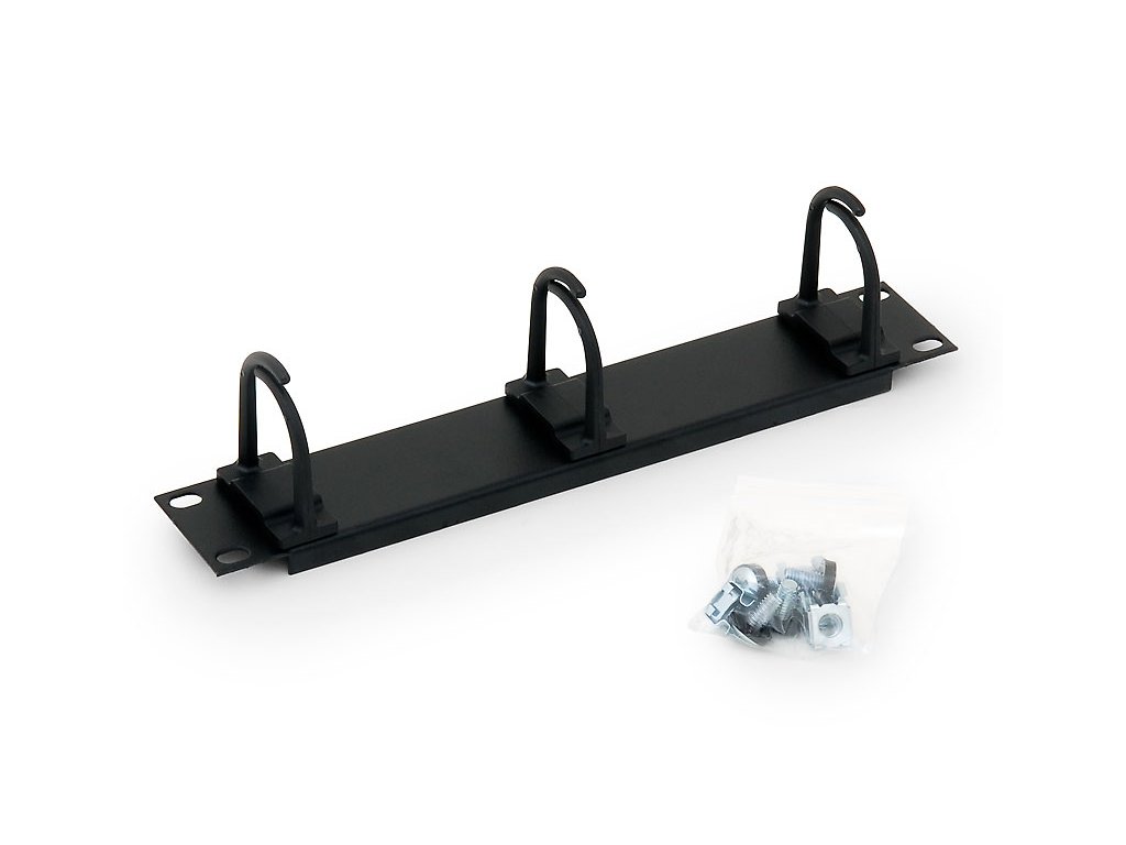 Panel Triton 10" vyvazovací, 1U, 3x plastový háček, černý