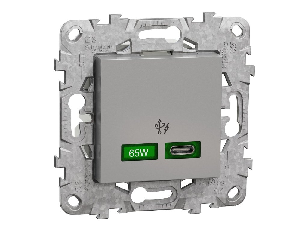 SCHNEIDER Zásuvka Unica Rychlonabíjecí konektor USB C (65W), Aluminium