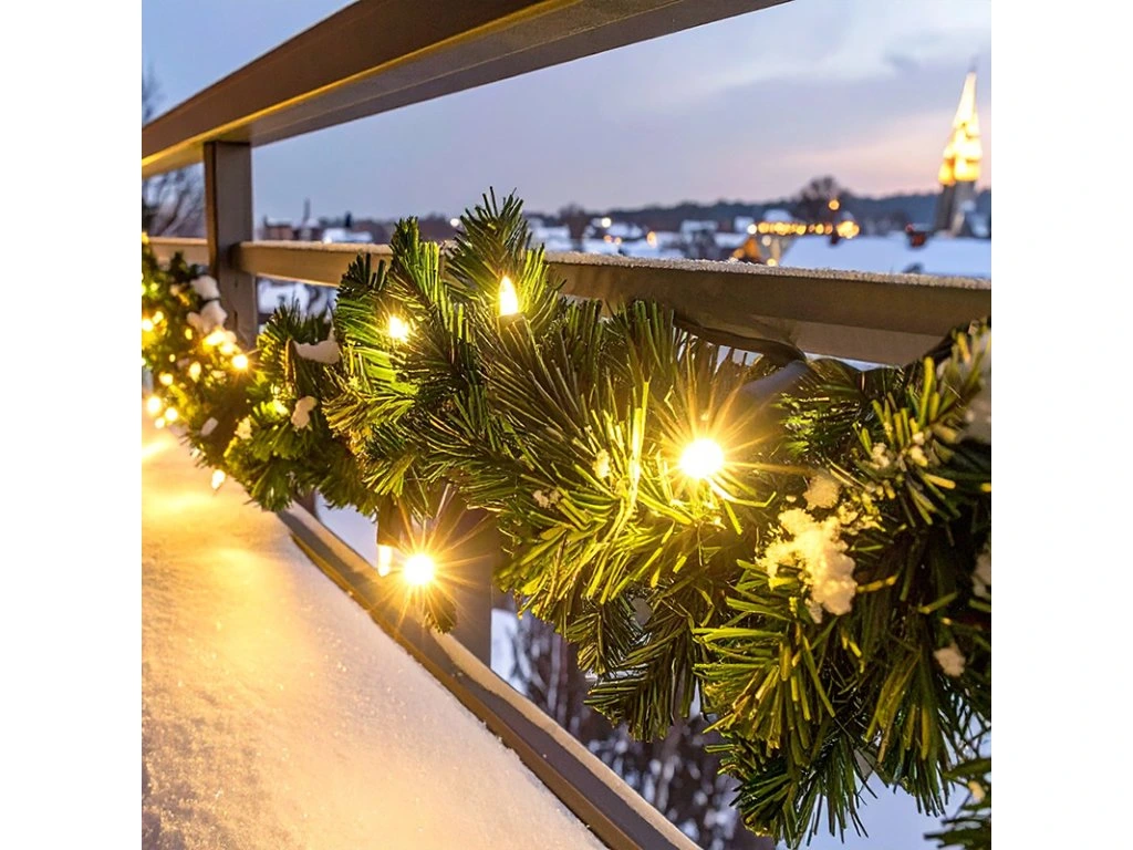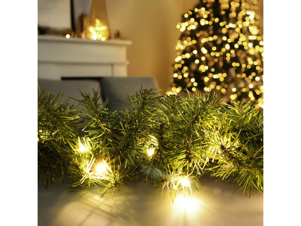 Solight LED vánoční girlanda s jehličím, 5m, 80x LED, časovač, 3xAA, IP44