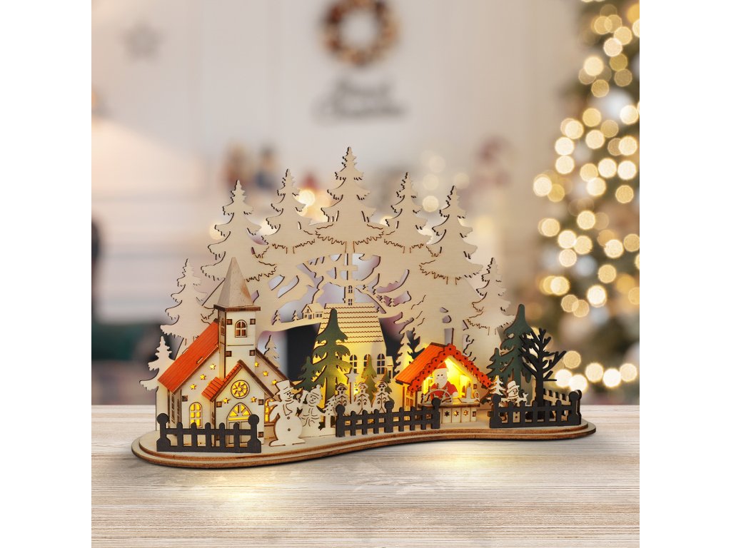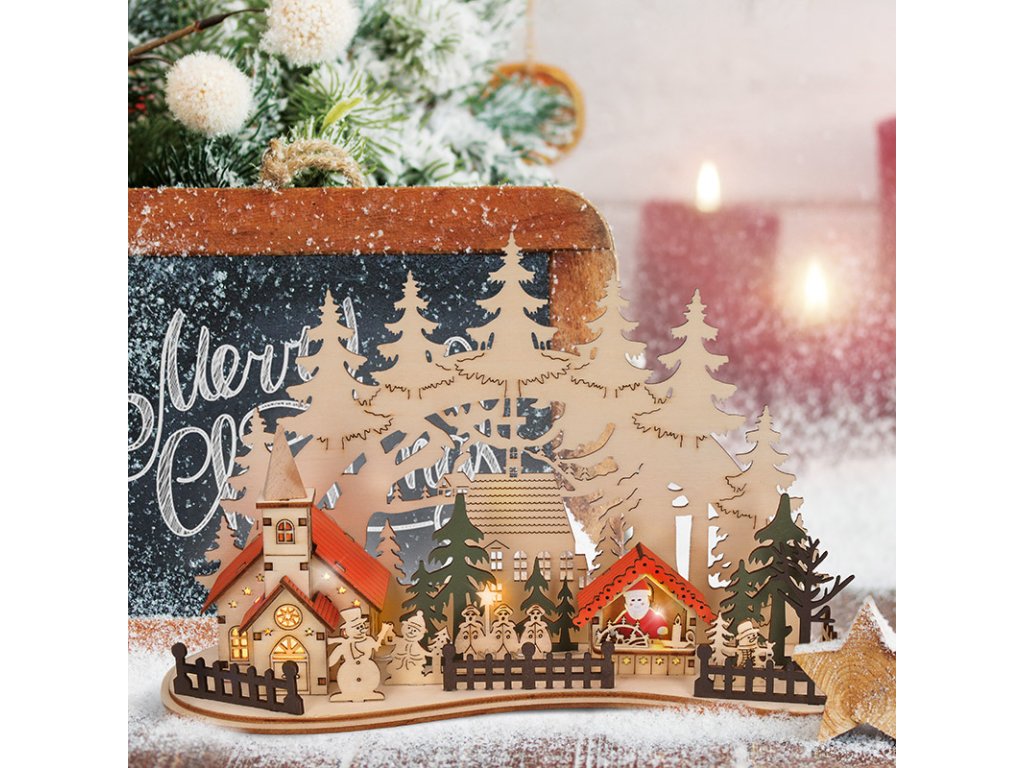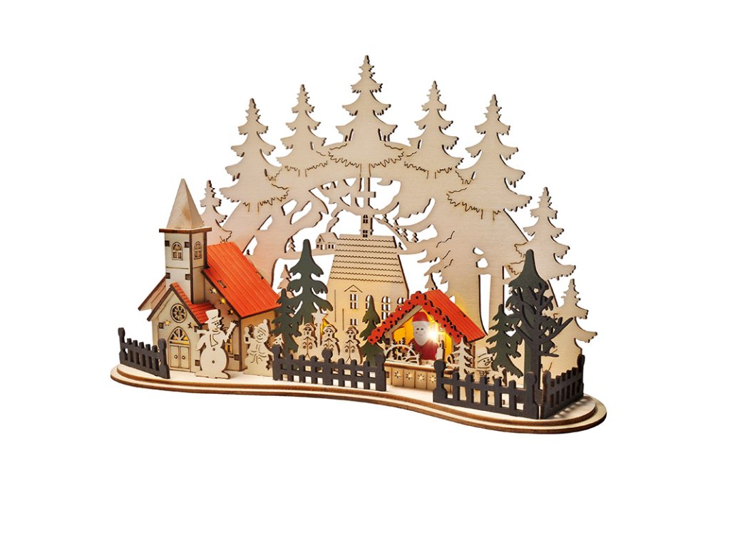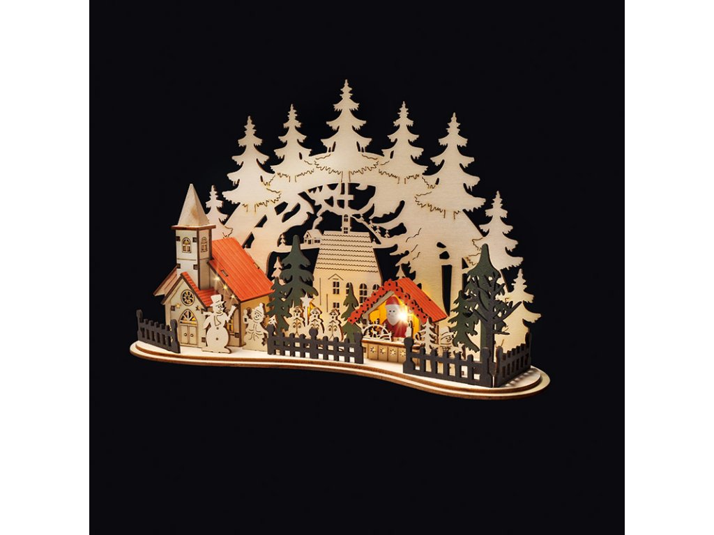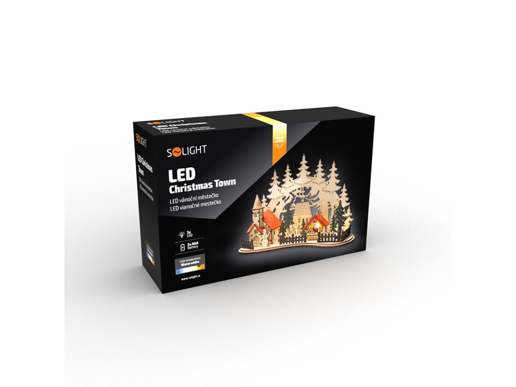 Solight LED vánoční městečko s kostelem, 30x19cm, 2x AAA