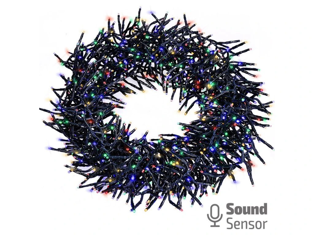 Solight LED venkovní vánoční řetěz s dálkový ovládáním a zvukovým senzorem - Cluster, 576 LED, 8 funkcí, časovač, IP44, vícebarevná