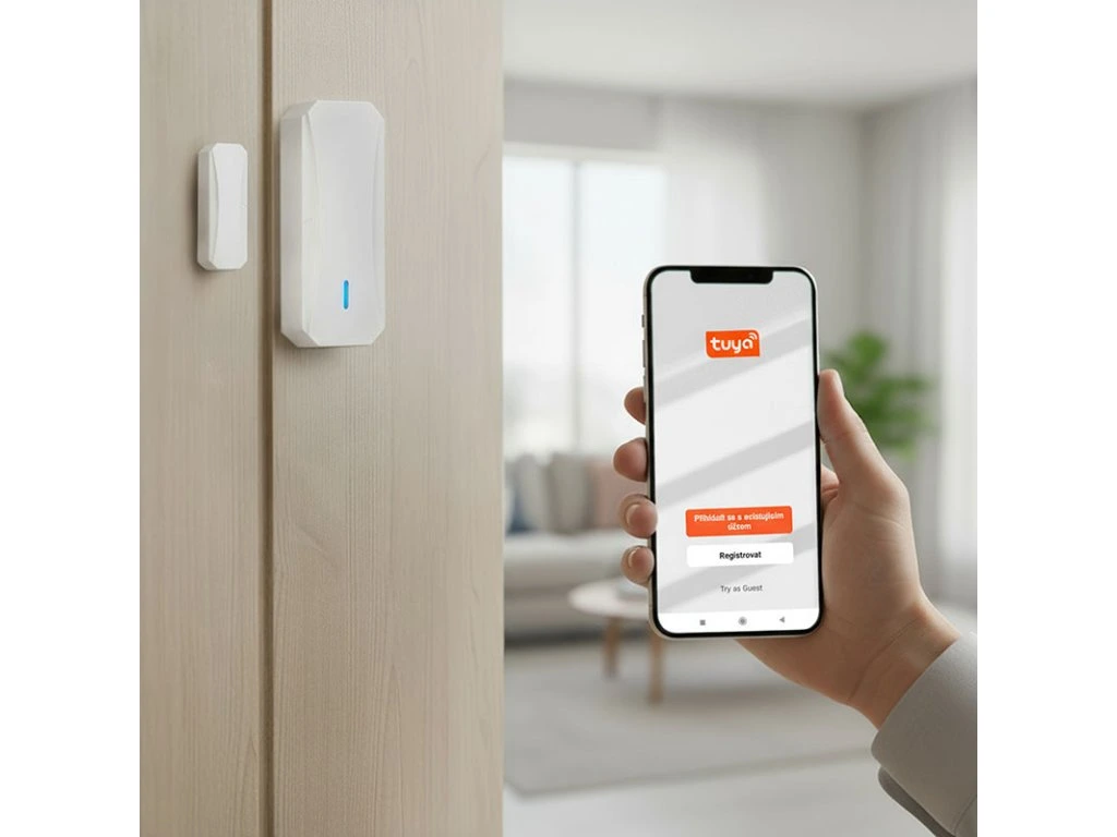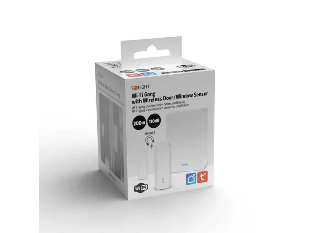 Solight smart WiFi hlásič pohybu/gong, magnet čidlo na dveře, napájení ze zásuvky, bílý