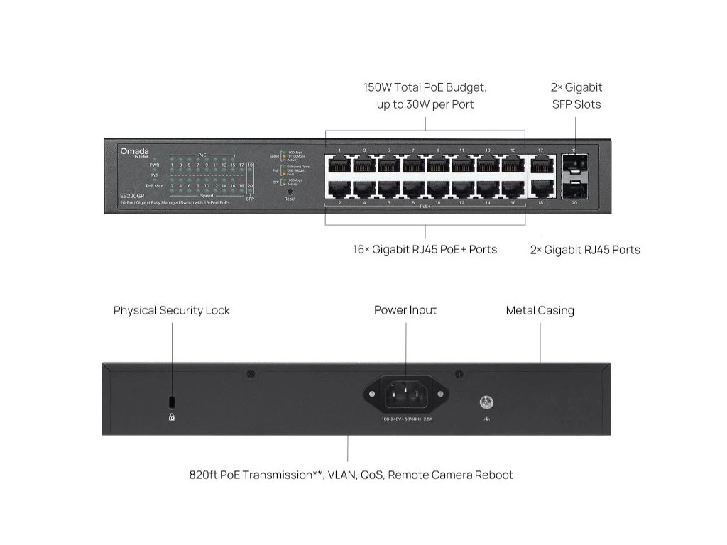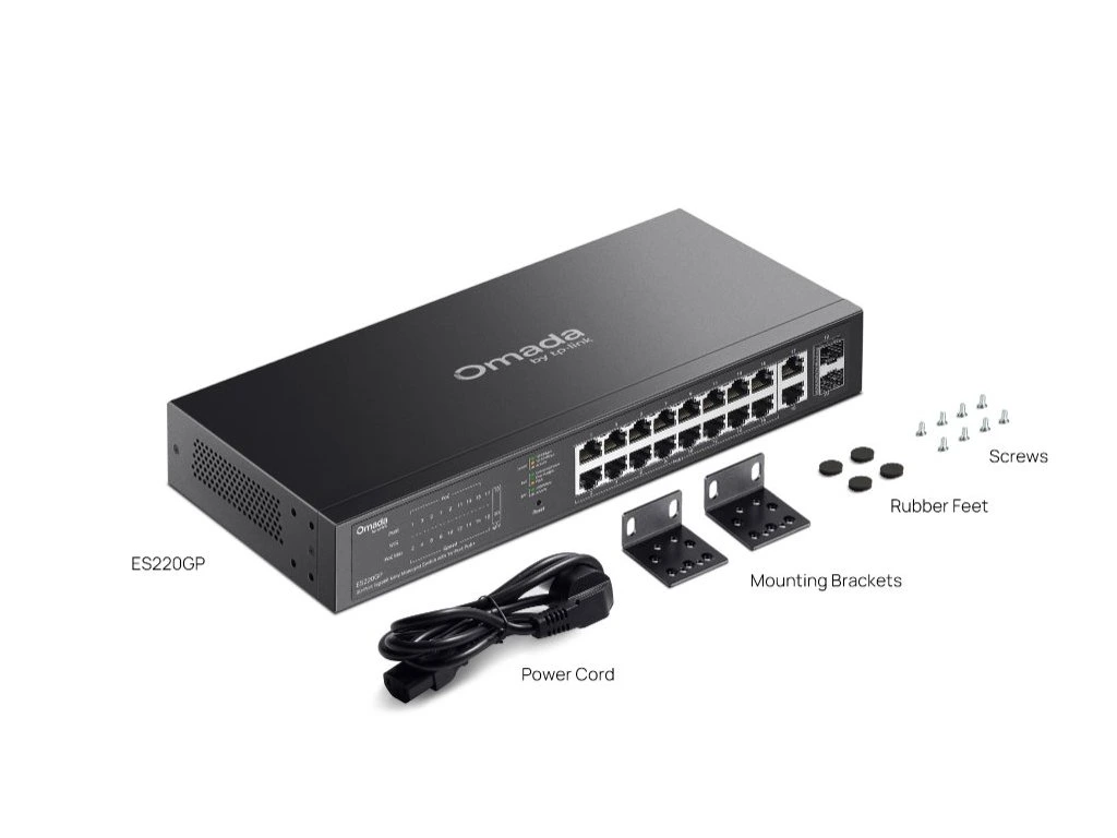 Switch TP-Link ES220GP 16x GLan s PoE+, 2x GLan, 2x SFP, 150W, Omáda SDN, poškozený obal