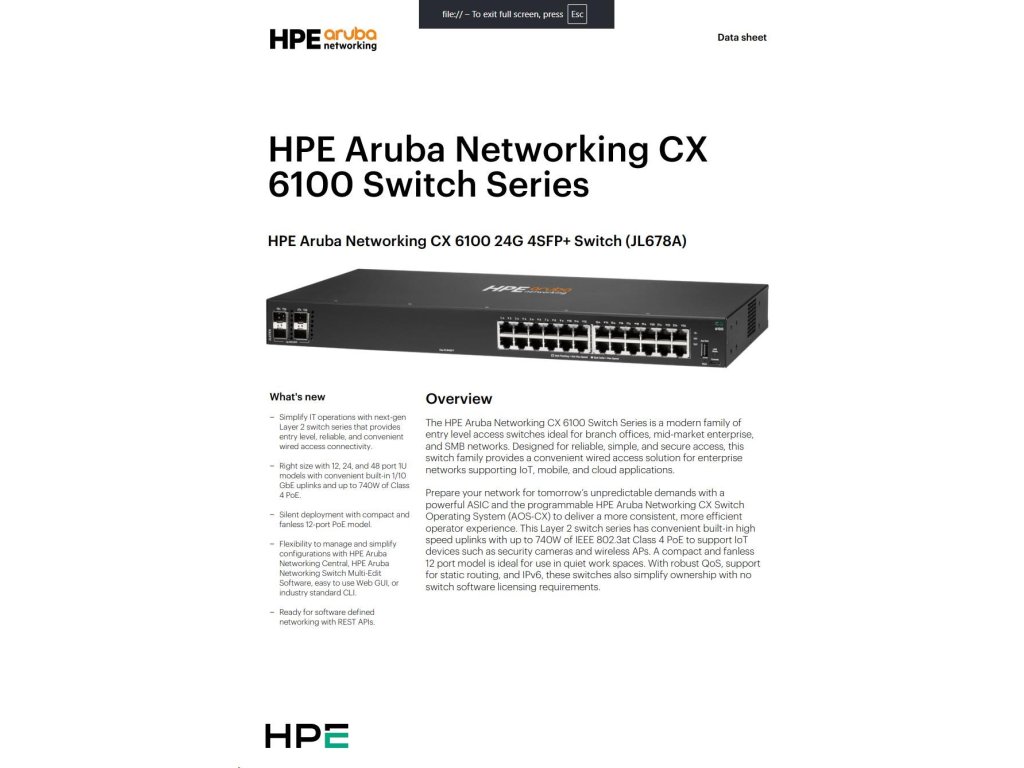 HPE Aruba Networking CX 6100 24G 4SFP+ Switch JL678A RENEW