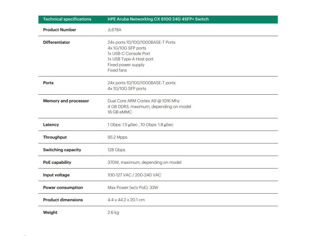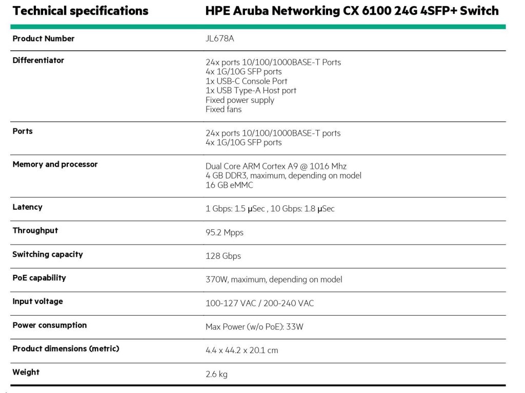 HPE Aruba Networking CX 6100 24G 4SFP+ Switch