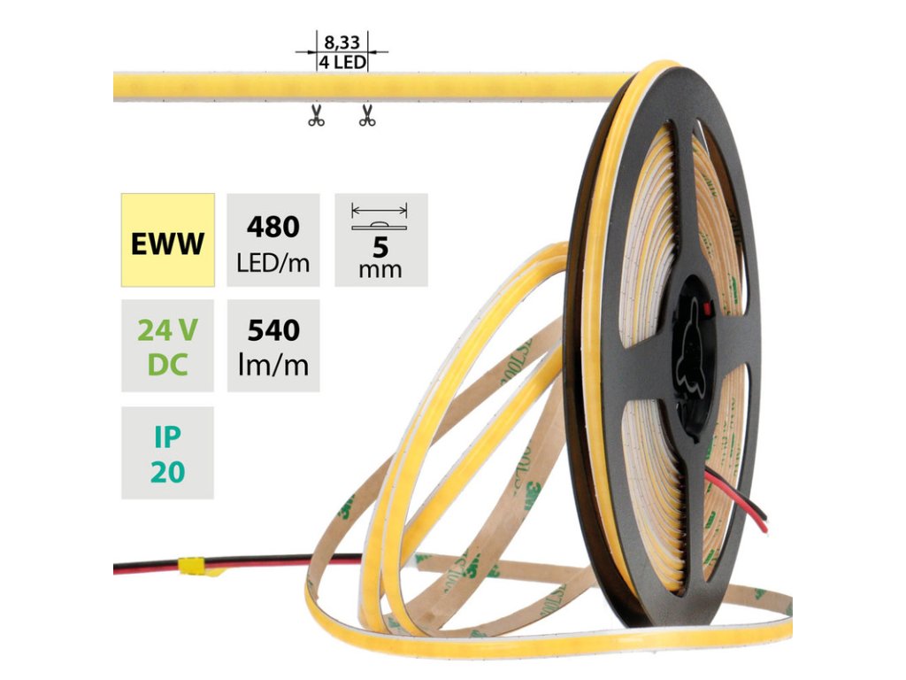 LED pásek COB EWW, 480LED/m, 6W/m, DC 24