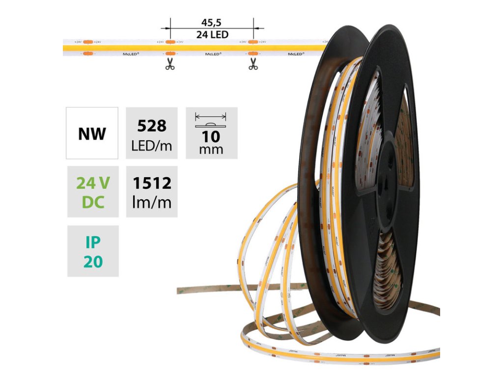 LED pásek COB NW, 528LED/m, 14W/m, DC 24
