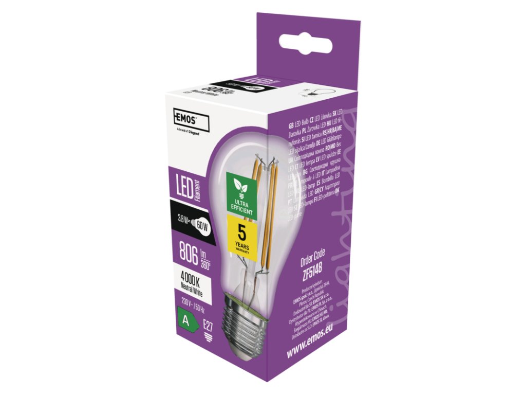 LED žárovka A60/E27/3,8W/60W/806lm/neutrální bílá