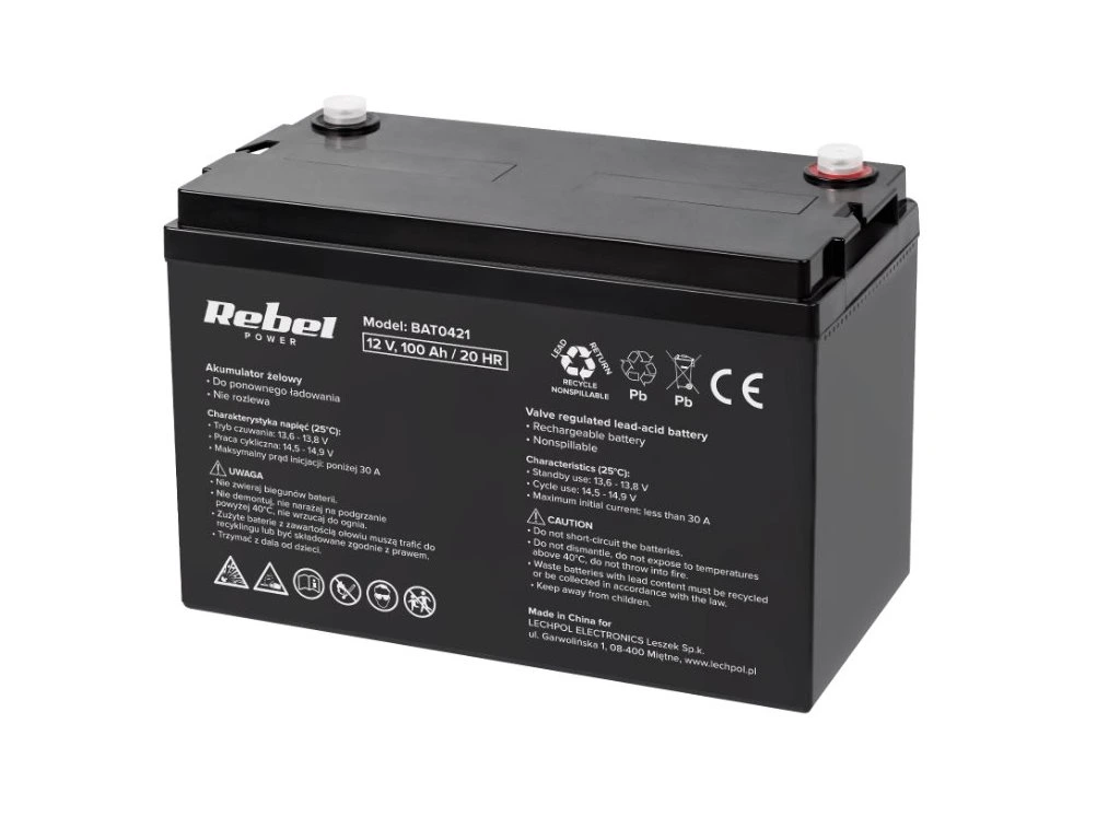 Baterie olověná 12V / 100Ah REBEL BAT0421 gelový akumulátor