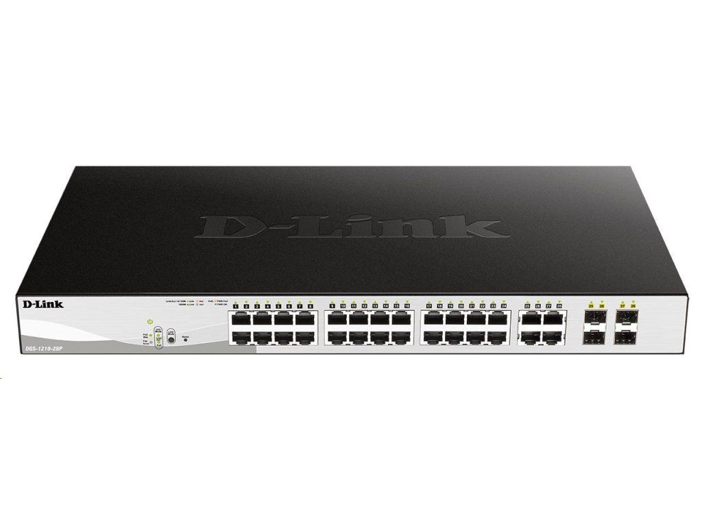 D-Link DGS-1210-28P 28-port Gigabit Smart+ PoE Switch, 24x GbE PoE+, 4x RJ45/SFP, PoE 193W