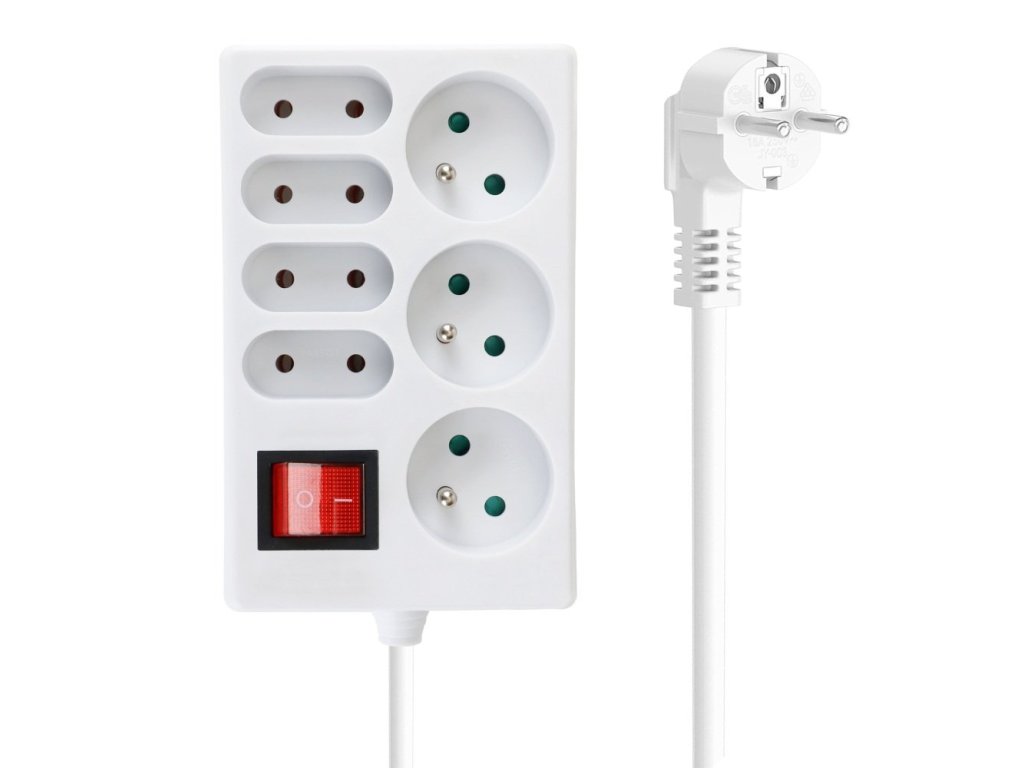 Kabel PremiumCord Prodlužovací přívod 230V 1,5m 3+4 zásuvky+vypínač