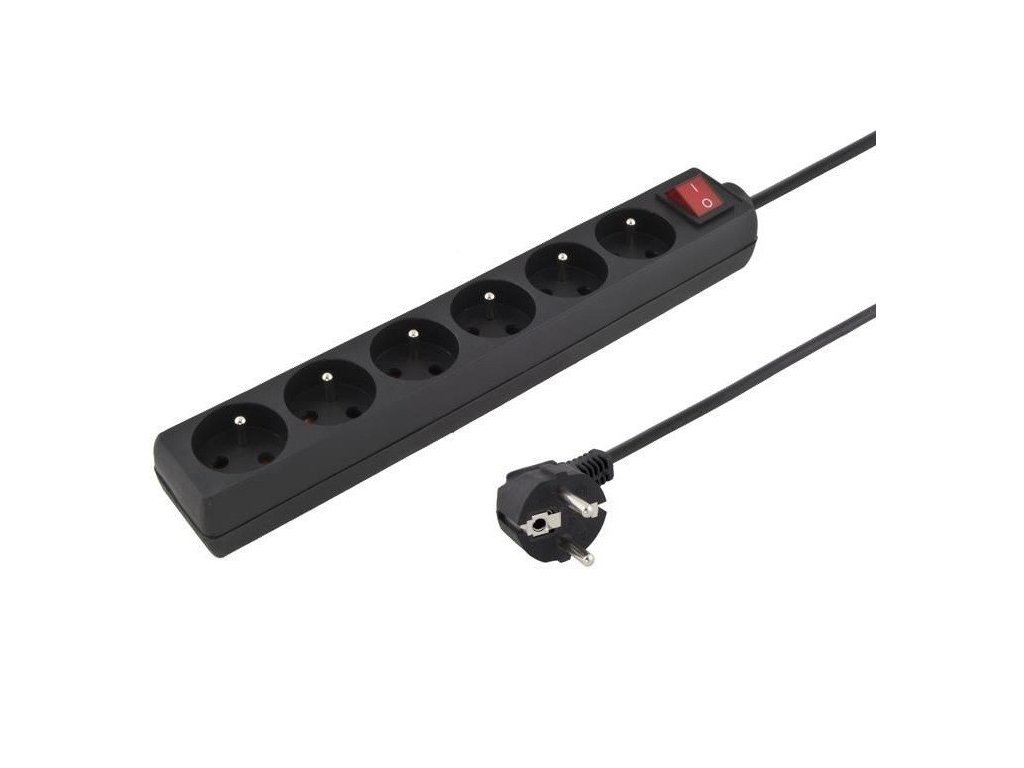 Kabel PremiumCord prodlužovací přívod 230V 5m 6 zásuvek + vypínač, černý