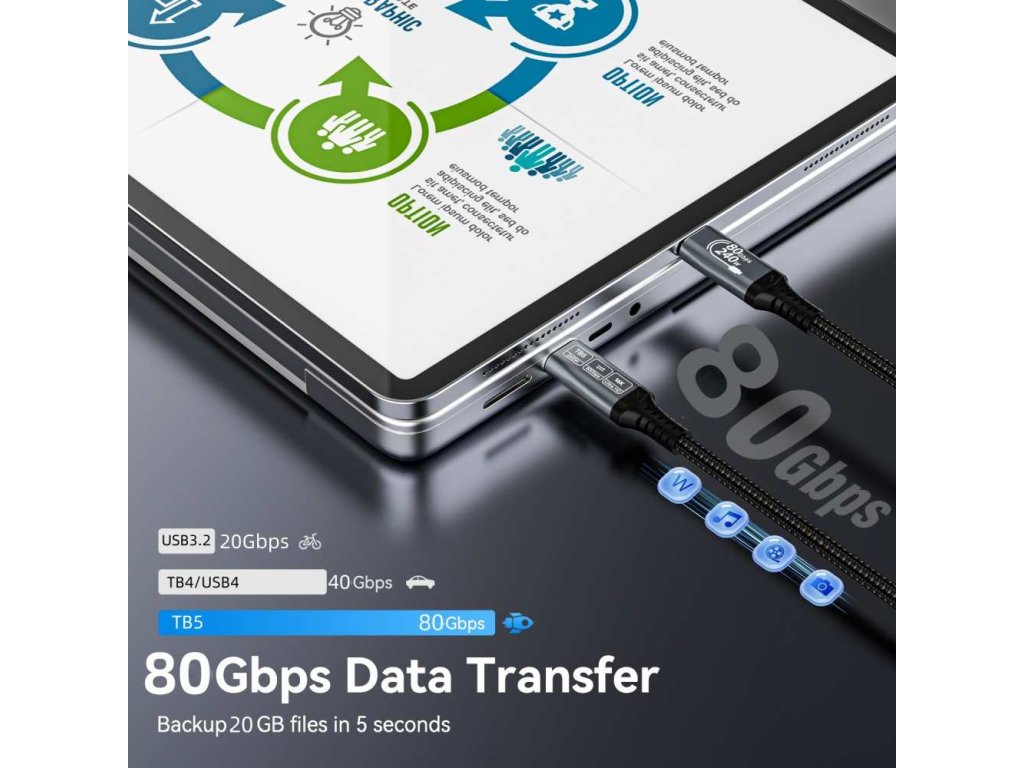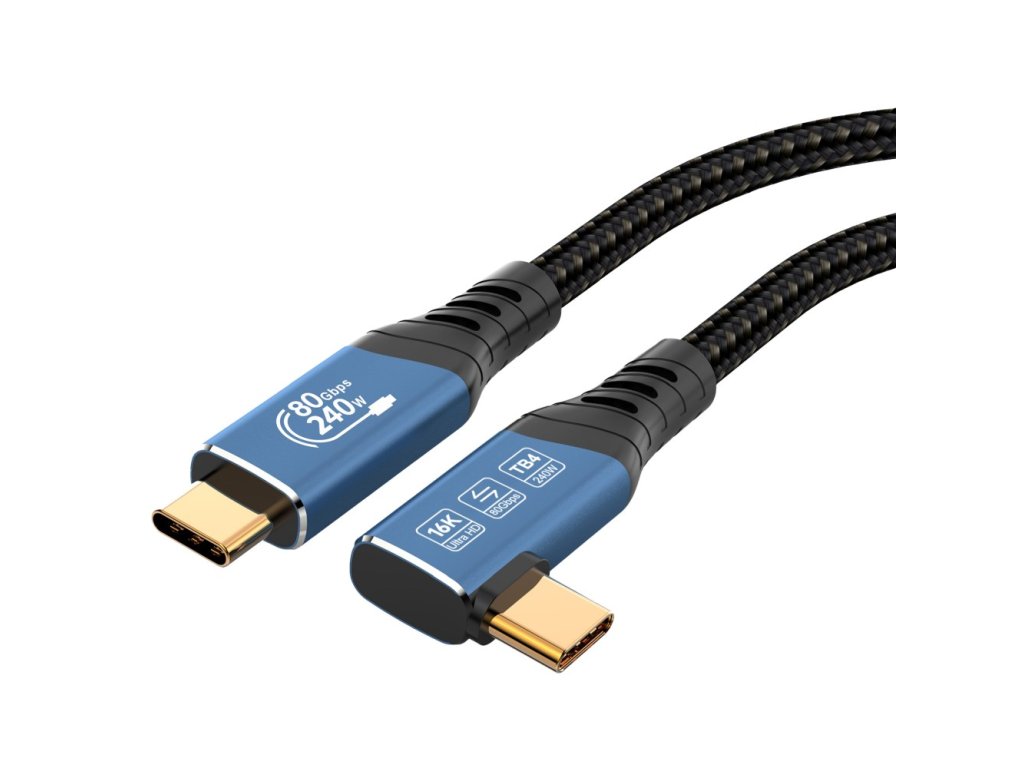 Kabel PremiumCord USB4™ Version2.0 Thunderbolt 3 a 4 80Gbps 16K@60Hz, 1,2m zahnutý, bavlněný oplet