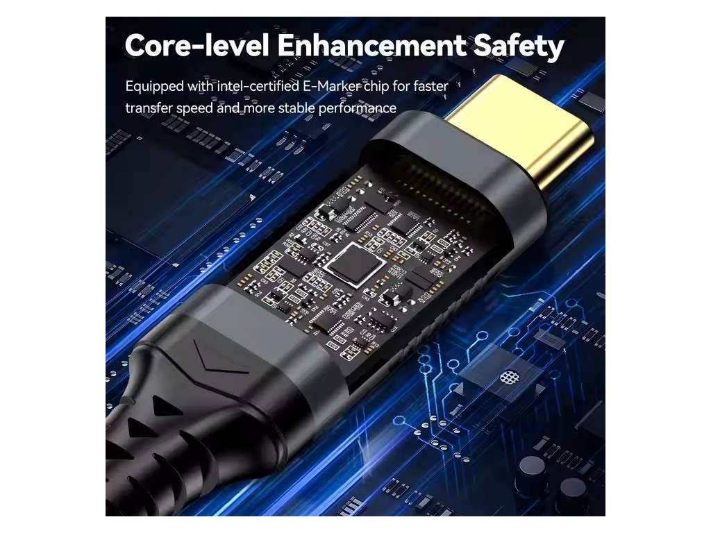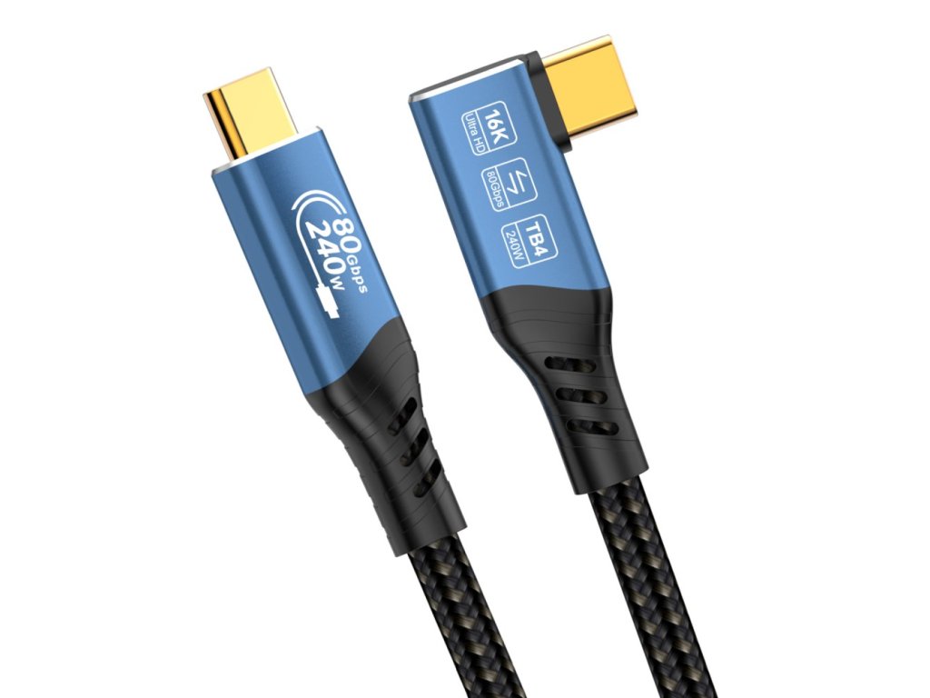 Kabel PremiumCord USB4™ Version2.0 Thunderbolt 3 a 4 80Gbps 16K@60Hz, 1,5m zahnutý, bavlněný oplet