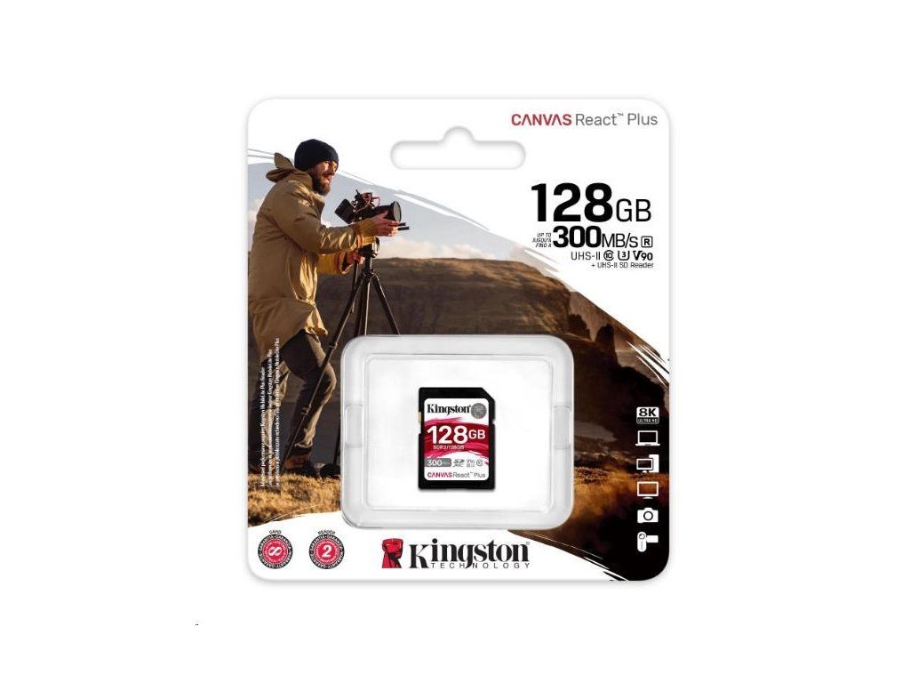 Kingston SDXC karta 128GB Canvas React Plus SDXC UHS-II 300R/260W U3 V90 for Full HD/4K/8K