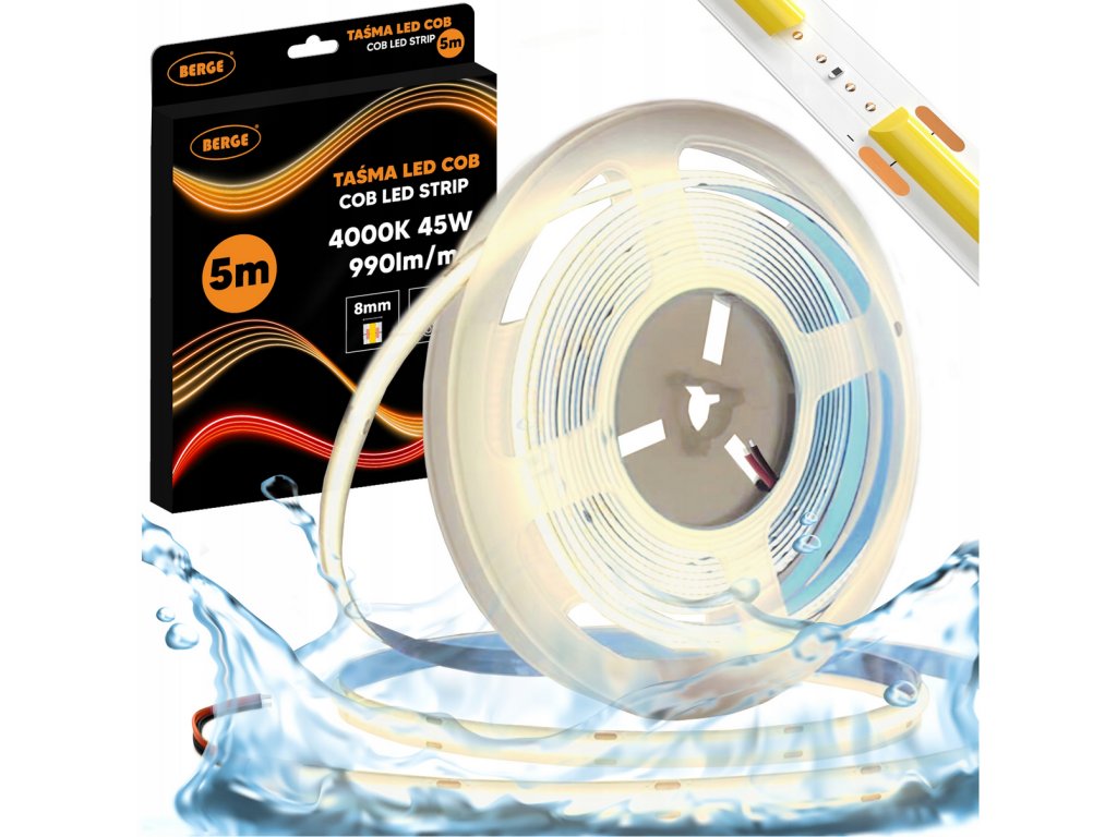 LED pásek COB Neon 12V - 480D - 9W/m - IP67 - 990lm - 5m - neutrální barva