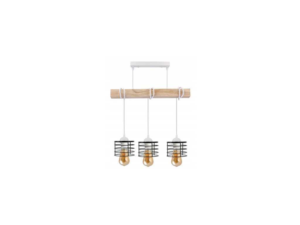 LED závěsné stropní svítidlo, dřevěné, bílé, 3xE27, loft pružina