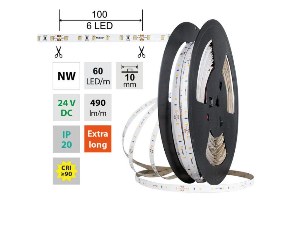 MCLED Pásek LED SMD2835 NW, 60LED/m, 4,8W/m, DC 24V, 432lm/m, CRI90, IP20, 10mm, 50m