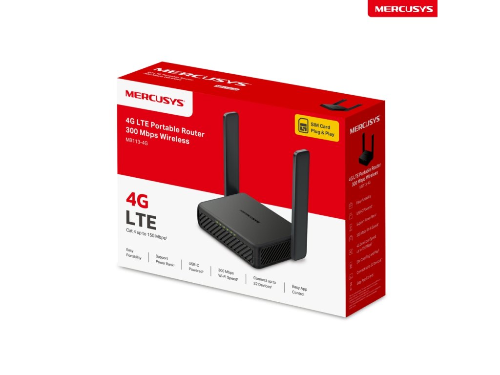 Mercusys MB113-4G N300 WiFi 4G LTE přenosný router